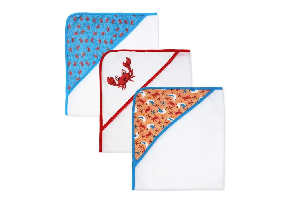 View full details100% PolyesterHooded Towel - 27” x 30”Washcloth - 8" x 8" 3 Bath Toys - BPA free