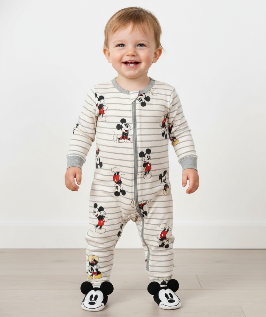 View full detailsKeep your little one cozy and comfortable with this cute footed Mickey Mouse baby sleeper, thoughtfully designed for babies from 0 to 9 months. Mad...