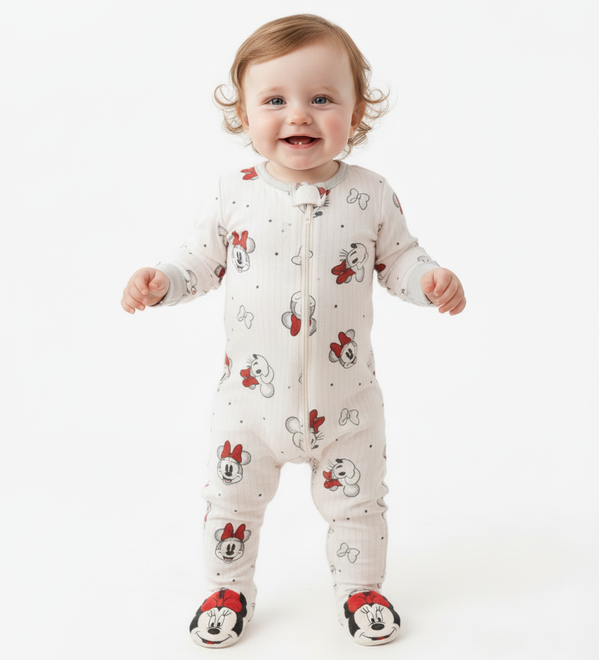 Wrap your little one in comfort with this adorable Disney Minnie Mouse footed Sleeper, specially designed for babies aged 0 to 9 months. Crafted fr...
