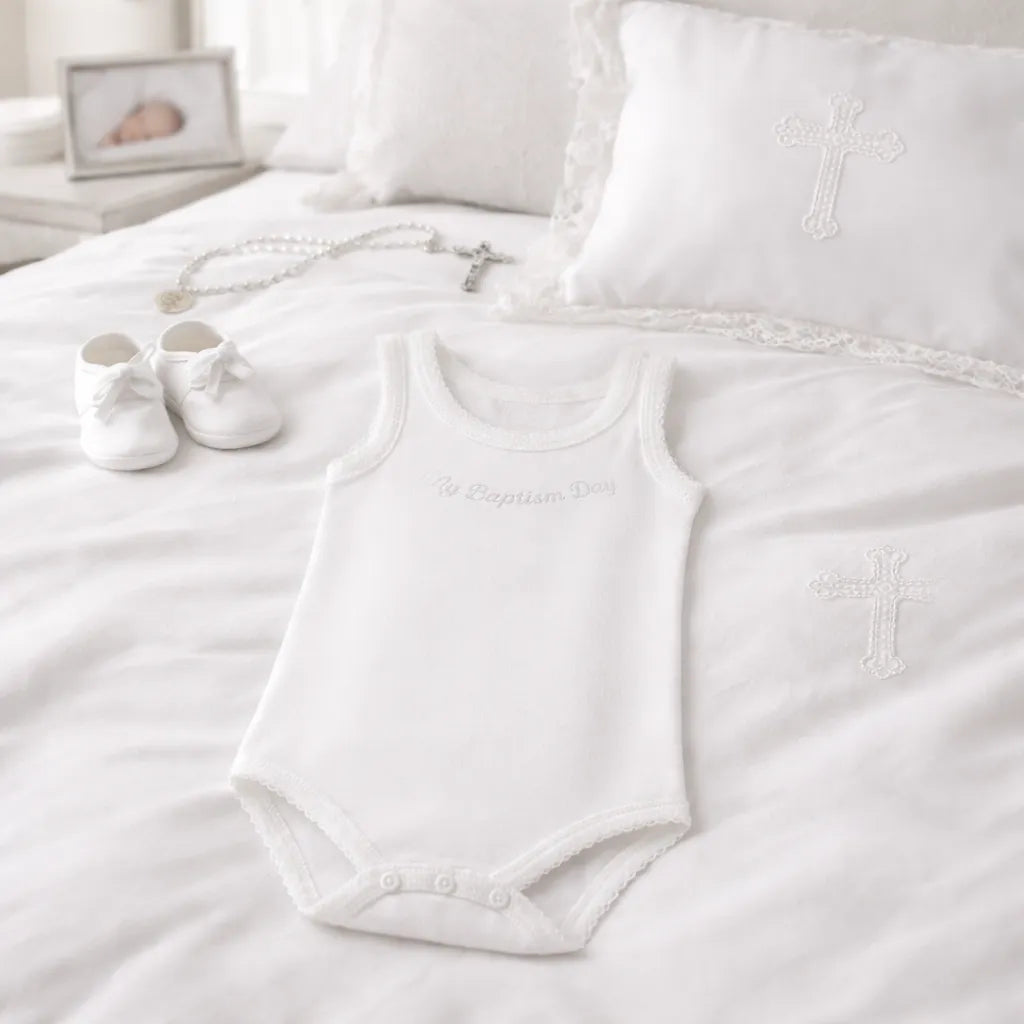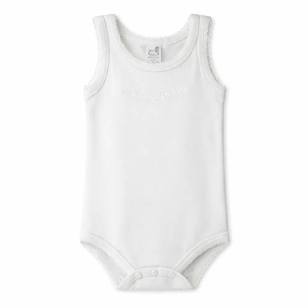 Girls' Sleeveless White Baptism Bodysuit | "My Baptism Day" | Made in Italy (Ages 3–24 Months)
