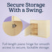 Secure door hardware Soft‑close hinge on the SafeSwing changing table |