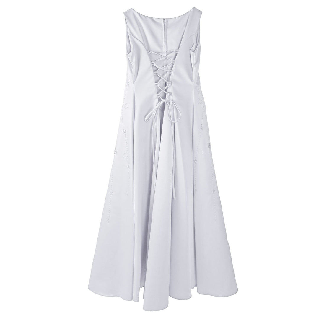 View full detailsThis beautiful white girls dress is perfect for communions, weddings, and special occasions. Made from soft satin fabric, it features a delicately ...