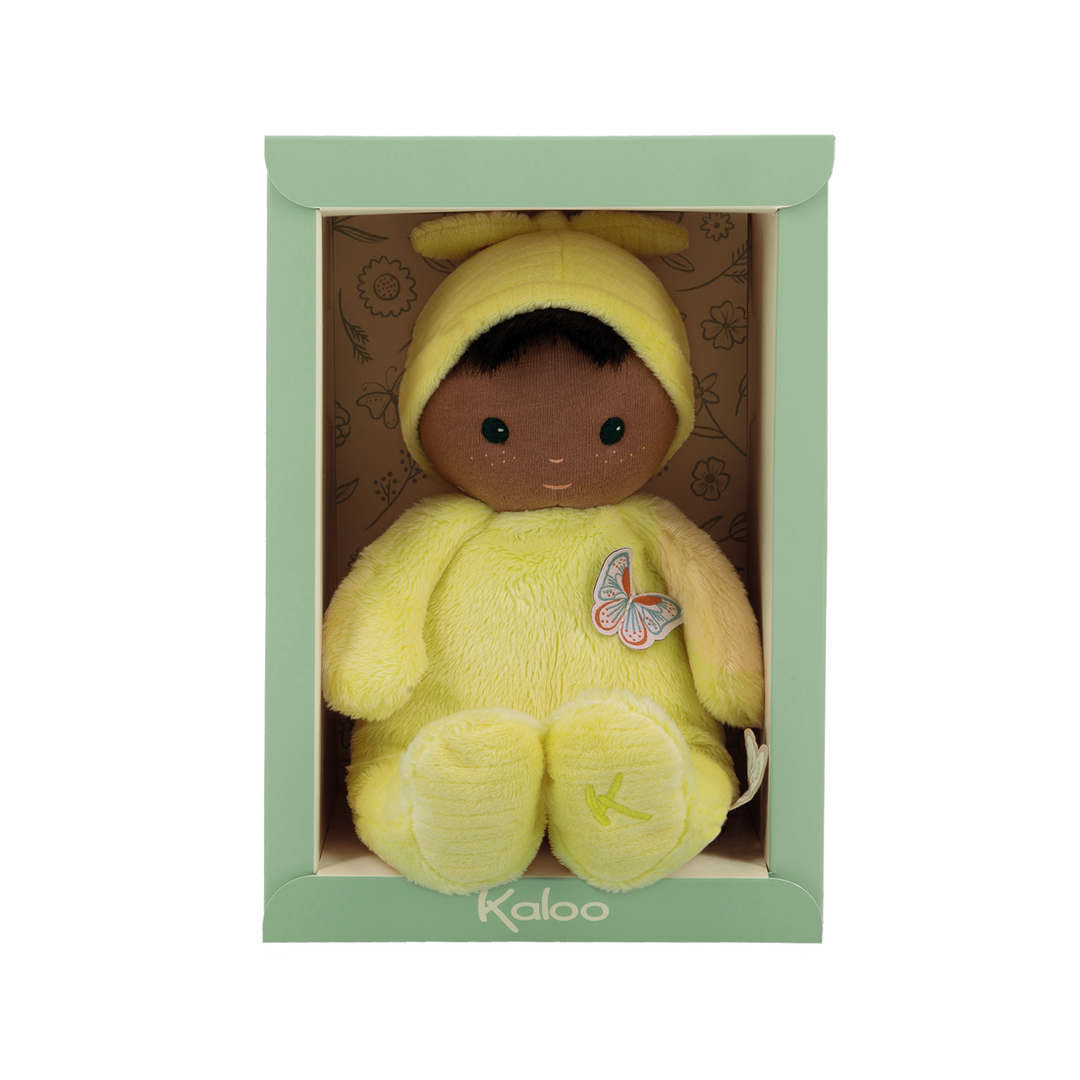 Kaloo's Baby Mimosa fabric doll (24 cm) is designed for newborns. Made from 90% recycled materials, it offers exceptional softness with its micro-v...