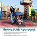 Padded bench seats with secure 5-point safety harnesses keep children comfortable and protected during every ride. |