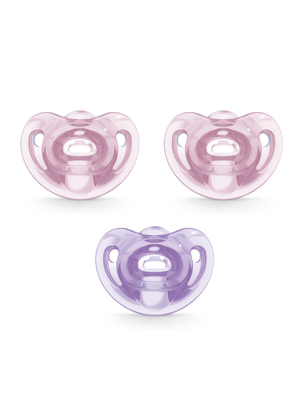 NUK® ComfyTM Pacifiers feature a one-piece 100% silicone design that gently contours to baby’s face. The heart-shaped shield fits perfectly under b...