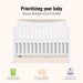 Le lit bébé convertible 5-en-1 Dream On Me Emerson est conçu pour accompagner la croissance de votre enfant tout en offrant un style intemporel et une fonctionnalité inégalée. Doté d'un cadre robuste de taille standard, ce lit se transforme facilement en lit bébé, en lit enfant, en lit de jour et même en lit une place (kits de conversion vendus séparément), garantissant ainsi des années d'utilisation. Fabriqué avec des matériaux de haute qualité et arborant une élégante finition blanche avec des bordures effet bois, le lit bébé Emerson répond à toutes les normes de sécurité, voire les dépasse. Son système de support de matelas réglable assure un confort optimal à chaque étape de la croissance, tandis que l'utilisation d'une peinture à base d'eau non toxique en fait un choix sûr pour la chambre de votre enfant. Dimensions du produit : 138,8 cm (L) x 74 cm (l) x 106,8 cm (H).