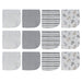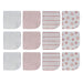 Ce lot de 12 débarbouillettes ultra-douces assorties est indispensable pour laver bébé avec douceur et délicatesse. Confectionnées en tissu blanc à motifs variés, elles sont ornées de finitions raffinées aux couleurs vives. En maille éponge 100 % coton, ces débarbouillettes sont lavables en machine. Ce lot sera plus que pratique au moment du bain !