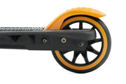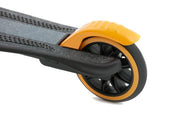 Un frein large et efficace sur la roue arrière offre un système robuste pour ralentir et arrêter les scooters.