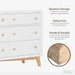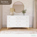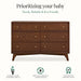 Made for the versatile, gender-neutral decor, The Antilia Mid-Century Collection brings you the Antilia Double Dresser – the perfect dream nursery addition to hold your little one’s necessities. Simple design meets an ultra-modern build to seamlessly blend into your style. Equipped with six spacious draws, this Double Dresser comes fully assembled with an anti-tipping kit, making it an ideal shift and fit in any part of your home. Made of solid poplar wood and fine veneers with a luxurious textured finish, each drawer boasts of English Dovetail joints with a soft-close feature. The Antilia Double Dresser comes in 3 timeless finishes – warm Sand Castle Oak, classic White & Natural, calming Vanilla Bean and rich Walnut. Sturdy & safe, it’s tested for lead and other toxic elements to meet or exceed government and ASTM safety standards. Pair it with the 5-in-1 Convertible Crib and Changing Tray from the Antilia Collection to truly complete your dream nursery. Product dimensions – 52” L x 18” W x 35” H with a weight of 118.8 lbs.