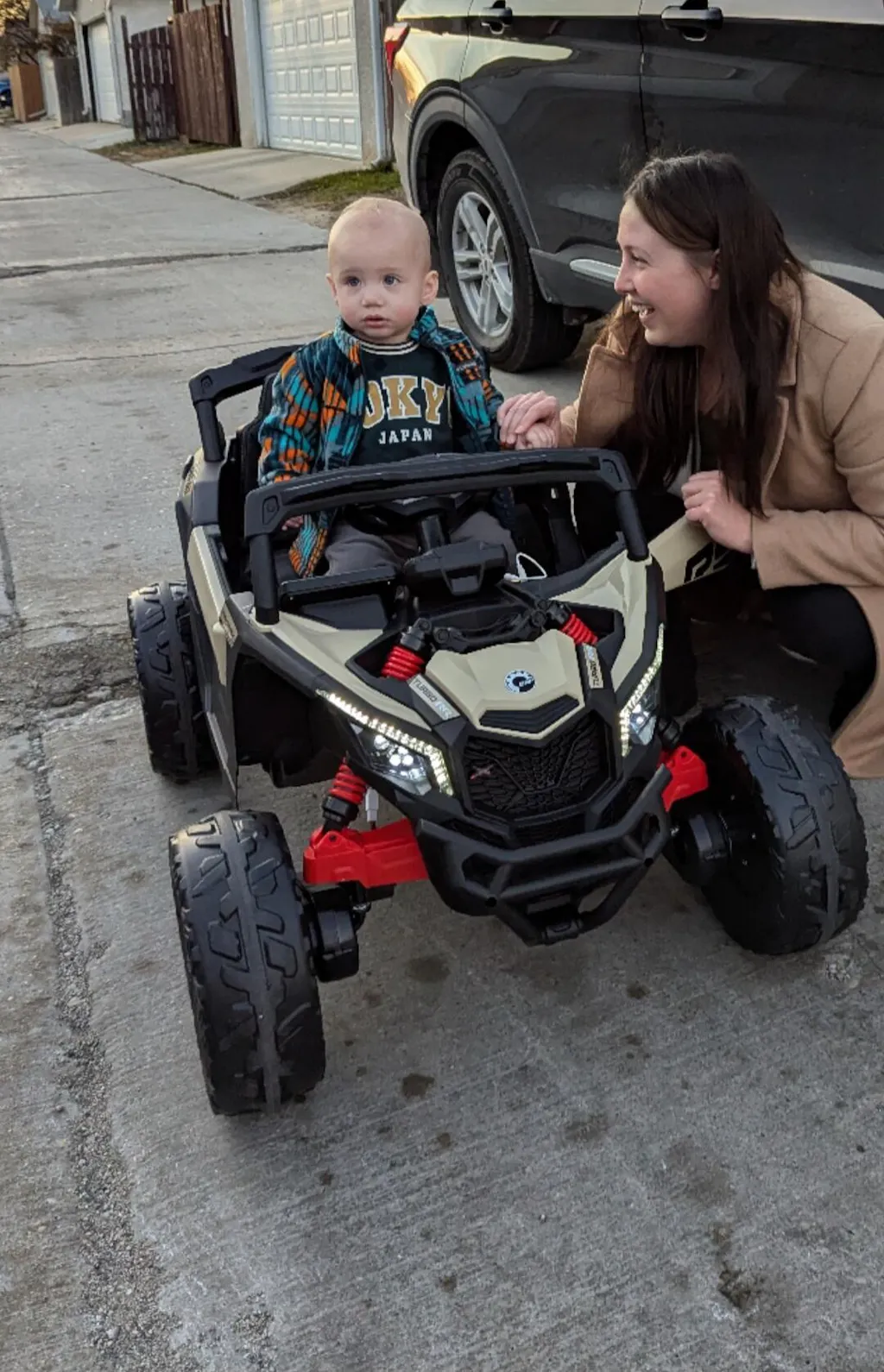 Bold front design inspired by the real Can-Am Maverick, featuring signature headlights and a rugged bumper for an authentic off-road look that kids will love. |