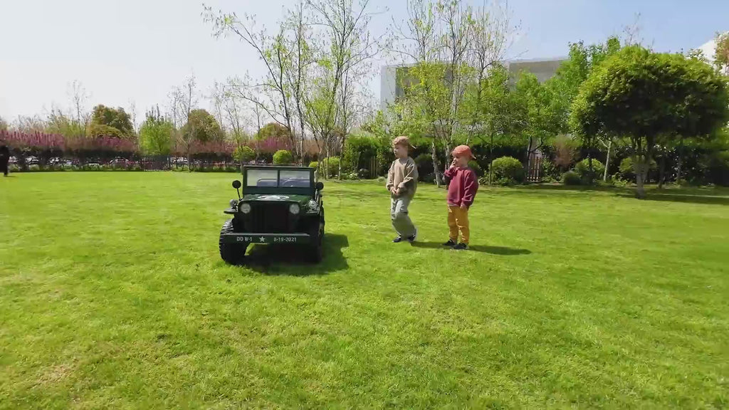 The Freddo Toys 24V Military Willy Jeep 3-Seater Electric Ride-On Car is a powerful and stylish adventure vehicle designed for young explorers. Built with rugged off-road style and military-inspired details, this kids’ ride-on car delivers the ultimate outdoor driving experience. Ideal for children aged 3 to 8 years, it offers seating for up to three riders, making it perfect for siblings or friends to enjoy together. With strong 24V dual batteries, four powerful 120W motors, and real LED lights, this electric ride-on ensures both fun and safety for little drivers.