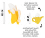 Anita the Bananita is the new baby banana teether concept for babies by Oli&Carol. Designed with an ergonomic shape making it easy to hold and chew on. Including a range of textures, such as raised spots or ribbing, making it very pleasing for little ones to soothe teething gums. This mini teether is easy to hang from a strap and chew it on the go… take your chewy-to-go high & low!
