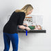 Space-efficient horizontal baby changing station integrates seamlessly into professional restroom environments.