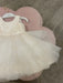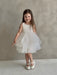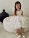 The round neckline adds a classic touch, while the voluminous tulle skirt creates beautiful movement, perfect for twirling and celebrating. Designed with comfort in mind, it includes a soft inner lining and a back zip closure for easy dressing.