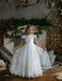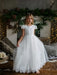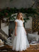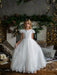 The Teter Warm® Brynlee Communion Dress is a graceful and elegant choice designed for memorable moments. Crafted in a beautiful off-white lace and tulle design, this dress features a delicate lace overlay bodice with soft cap sleeves, creating a timeless and refined silhouette.