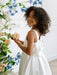 At the back, a removable satin bow adds a sweet finishing touch while cleverly concealing the hidden zip closure for a smooth and polished appearance. Perfect for weddings and celebrations, the Caroline dress blends simplicity with refined detail.