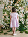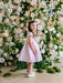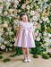 A classic round neckline and adorable puff cap sleeves create a sweet and feminine silhouette. The dress features a bow accent at the front, adding a stylish focal point that enhances its youthful charm.