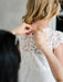 At the back, a charming pearl-accented closure paired with a hidden zip ensures both elegance and a secure fit. The highlight of the design is the structured horsehair skirt, which adds gentle volume and shape, creating a princess-inspired look while allowing graceful movement.
