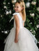 The standout feature is the multi-tiered tulle skirt with horsehair trim, designed to create beautiful volume, soft movement, and a graceful twirl-worthy silhouette. At the waist, a large satin bow at the front adds a sweet and eye-catching detail that completes the look with timeless charm.
